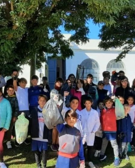Esta vez alumnos de la Escuela Primaria y de la Escuela Secundaria de Dufaur caminaron por la localidad para recoger deshechos.