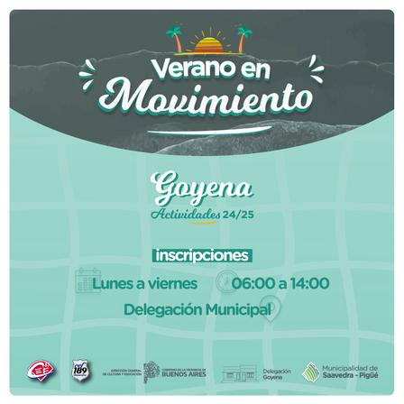Las inscripciones del Programa Verano en Movimiento se realizan, en Goyena, de lunes a viernes, de 6.00 a 14.00 horas.