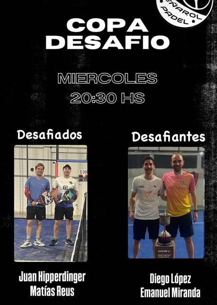 Ambos jugadores de padel, a las 20.30 horas, han desafiado a Juan Hipperdinger y a Matías Reus.