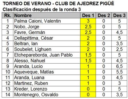 El Torneo de Verano del Club de Ajedrez tuvo cambios en su tabla de posiciones