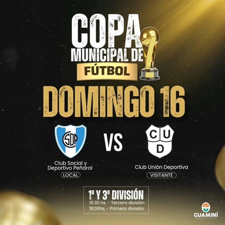 Club Social y Deportivo Peñarol, en Guaminí, será local ante Club Unión Deportiva, por la Copa Municipal de Fútbol.
