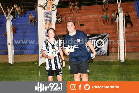 Alejandra Heim, del Club Unión, fue elegida la mejor del partido en el cruce de semifinales del fútbol femenino de verano, y el premio, en su nombre lo recibió Silvina Blanco.