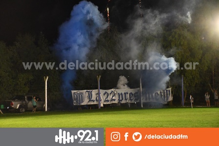 En el predio del Club Deportivo Argentino los seguidores de La 22 se acercaron con banderas, fuegos de artificio y humo para alentar a la Primera División Masculina del Club Sarmiento de Pigüé.