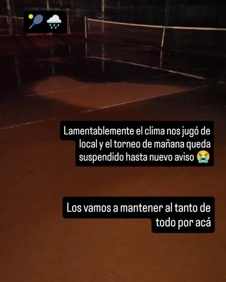 El certamen de singles no se llevará a cabo el fin de semana por las lluvias que se hicieron presentes en el predio de la Avenida Casella 650 de la ciudad.