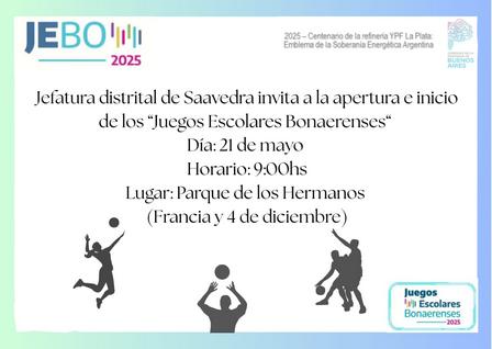 El día miércoles, por la mañana, se realizará el 1° Encuentro de los Juegos Escolares Bonaerenses en el Parque de La Salle.