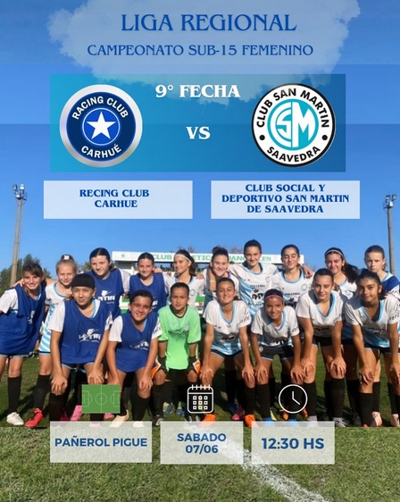 En el fútbol femenino Sub 15 San Martín de Saavedra enfrentará a Racing Club de Carhué
