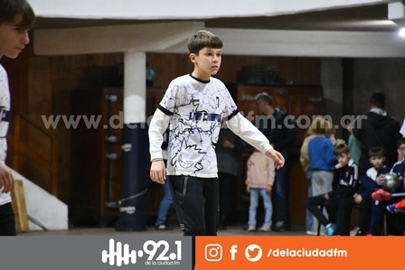 Chicos que representan a distintos equipos están enfrentándose entre sí en el Gimnasio Rodolfo Gayraud de Avenida Mitre 166 de la ciudad.