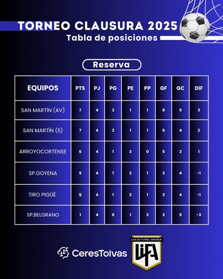 La Liga de Fútbol Amateur, en el Clausura de Primera División, tiene 2 líderes