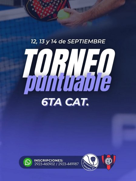 Este Torneo de Padel, de 6ª División, puntuable, del Club Atlético Peñarol, ya inscribe a los interesados en participar a través del 2923 44 99 87 y al 2923 46 09 02.