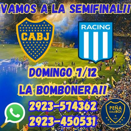 La Peña Dale Bo! ya recibe consultas, al 2923 57 43 62 o bien al 2923 45 05 31, para la salida prevista para el día domingo 7 de diciembre de 2025 con el fin de ser espectadores del partido del Club Atlético Boca Juniors vs. Racing Club de Avellaneda.