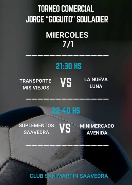 Los partidos anunciados para este día son los siguientes en Saavedra: