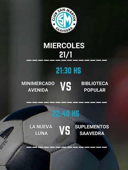 El Torneo Comercial Nocturno Jorge 'Goguito' Souladier tiene hoy, miércoles, 21 de enero de 2026, estos enfrentamientos en el predio del Club San Martín de Saavedra: