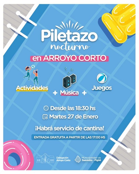 Arroyo Corto tendrá este martes su Piletazo Nocturno