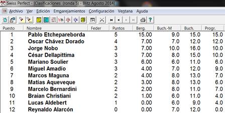Pablo Etchepareborda se quedó con el Blitz de Agosto sumando los cinco puntos en juego después de superar a Christiani, Amadío, Chávez Dorado, Dellapittima y Nobo respectivamente.