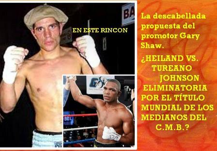 En declaraciones formuladas este jueves a la prensa estadounidense, el promotor Gary Shaw que representa al boxeador de Bahamas, radicado en Georgia, Estados Unidos, Tureano Johnson (18 (13) – 1 – 0), de 31 años, 2º en el Ranking Mundial de los Medianos del CMB, ha dejado en claro que desea que su pupilo enfrente al argentino Jorge Sebastián Heiland (25 (13) – 4 – 2), de 28 años, Nº 1 del escalafón de los Medianos en el CMB, en lo que él interpreta que debería ser una Eliminatoria entre los dos mejores clasificados al Título Mundial de la división.