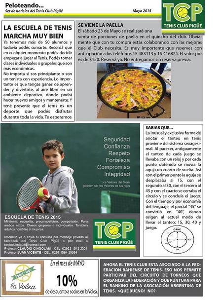 El Tenis Club Pigüé difunde sus actividades con el nuevo Peloteando
