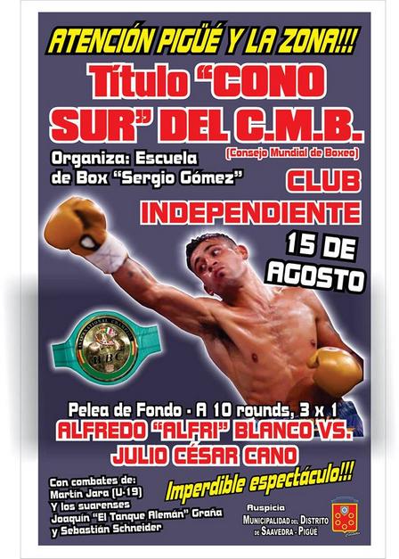 En el Club Independiente, el 15 de agosto, tendrá lugar el combate por el título de Alfredo Blanco ante Julio César Cano.
