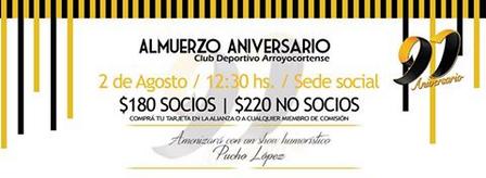 El almuerzo aniversario del Club Arroyocortense tendrá lugar el domingo 2 de agosto.