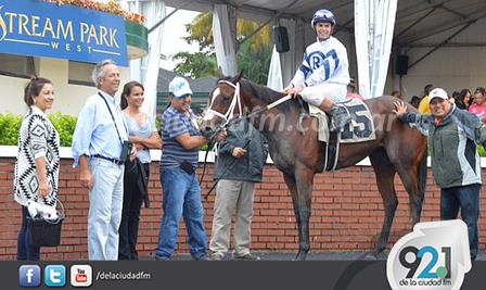 El jockey pigüense, con su caballo número 15, compitió en USA logrando un triunfo.