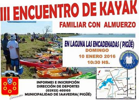 El Tercer Encuentro de Kayak se llevará a cabo en Laguna Las Encadenadas.