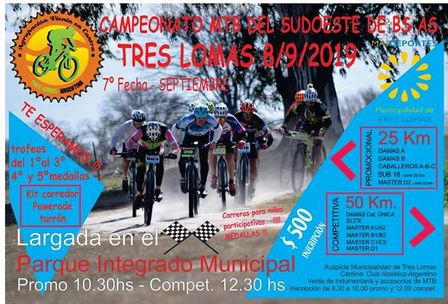 Por la séptima fecha del Campeonato de Mountain Bike del Sudoeste Bonaerense estará realizándose una competencia desde las 10.30 horas.