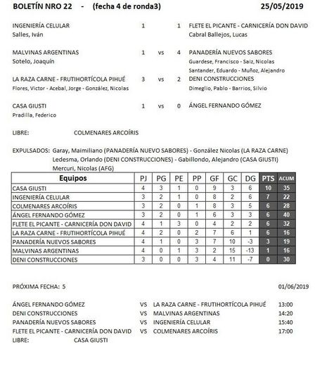 El sábado se jugó, por la tercera ronda, la fecha número 4.