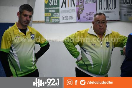 Nelson Trujillo, junto a Cristian Colón, con Walter Power en el banco de los relevos, juegan frente a Tiro Federal de Puan.