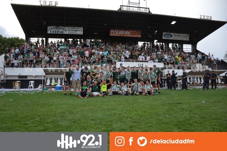 Tras la victoria llegó el momento de la celebración para los jugadores del conjunto qu superó 2 a 0 a Sarmiento de Pigüé.