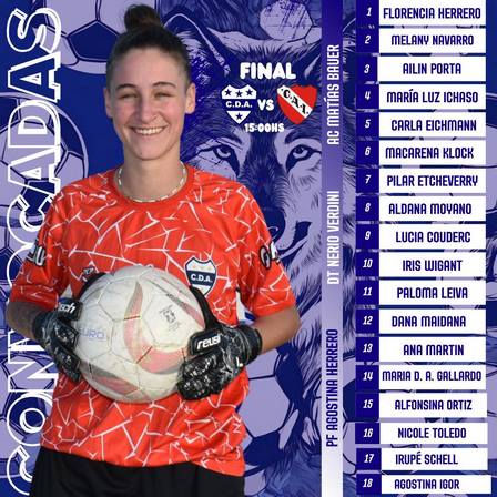 Club Deportivo Argentino tiene la nómina de futbolistas confirmadas para la Final del Torneo Clausura de hoy.