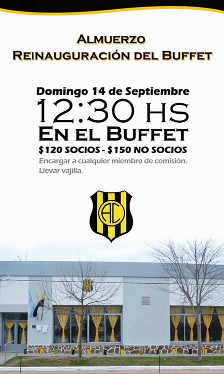 Según le indicaron a FM de la Ciudad este domingo tendrá lugar el almuerzo reapertura del buffet del Club Deportivo Arroyocortense.