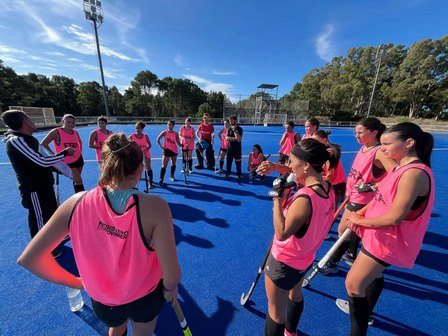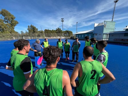Las jugadoras de Sarmiento, en hockey, realizaron una práctica especial en CARP de CABA
