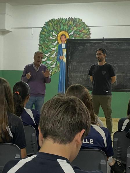 En La Salle, frente al Profesor Santiago Maestri, y a sus alumnos, dialogaron acerca del proceso de producción de la miel y destacaron la importancia que tienen las abejas para el equilibrio del planeta.