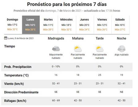 La sensación térmica, a la misma hora, en Pigüé, este lunes, era de diecisiete grados.