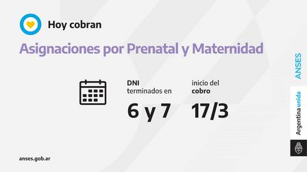 Las titulares de la Asignación por Prenatal y Asignación por Maternidad con documentos terminados en 6 y 7 perciben hoy su prestación.