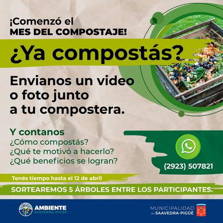 La invitación dice "si ya compostás envianos una foto o video junto a tu compostera y contanos tu experiencia de forma directa (whatsapp: -2923- 507821). Si es un video preferentemente que no sea más extenso que 1 minuto y que sea filmado en forma horizontal".