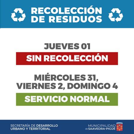El jueves no habrá recolección, al igual que el día sábado, por la noche.