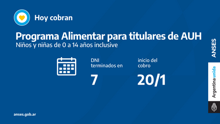 Hoy, jueves, cobran titulares de AUH con documentos terminados en 7 en la misma cuenta de la prestación.