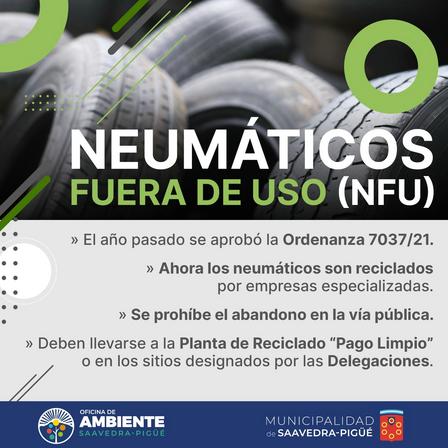 El Área de Medio Ambiente Municipal remarcó que las cubiertas fuera de uso deben llevarse a la Planta de Reciclado Pago Limpio en Pigüé.