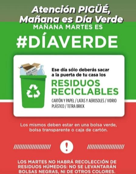Mañana será 'Martes verde' en Pigüé