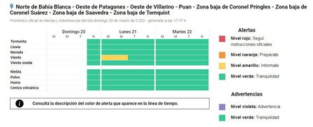 Hay alerta por vientos anunciado para el lunes.
