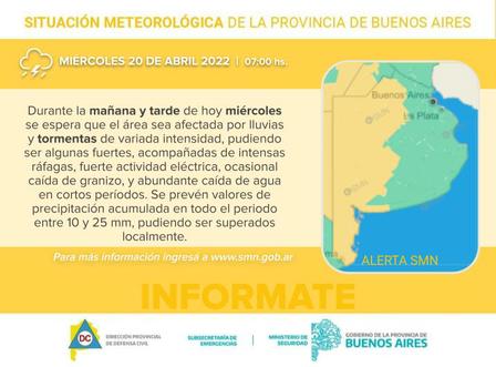 El alerta fue dado a conocer por el Área de Defensa Civil Municipal