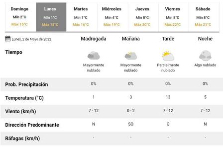 Este lunes la temperatura más elevada podría alcanzar los trece grados centígrados en la ciudad.