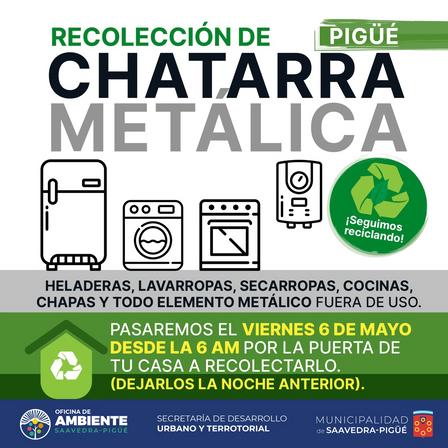 El viernes, en Pigüé, recolectarán chatarra metálica para trasladarla a la Planta de Reciclado con el fin de comercializarla.