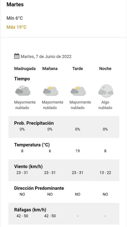 Se espera una jornada templada, con vientos de hasta 50 kilómetros por hora en la mañana.
