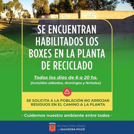 Los boxes en la Planta de Reciclado se encuentran habilitados durante todos los días.