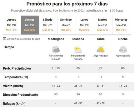 El Servicio Meteorológico Nacional, para Pigüé, advierte sobre posibles vientos de 42 a 50 kilómetros por hora tanto por la mañana como durante la tarde.