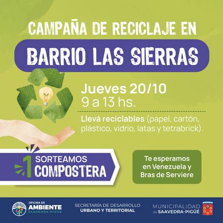 Hoy, jueves, desde las 9.00 hasta las 13.00 horas, se lleva a cabo la campaña de reciclaje en el Barrio Las Sierras.