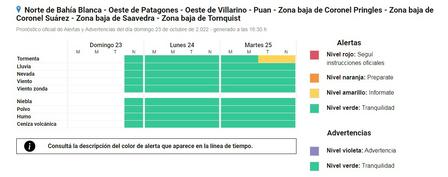 El área de cobertura, de acuerdo al Servicio Meteorológico Nacional, será afectada por tormentas, algunas localmente fuertes.