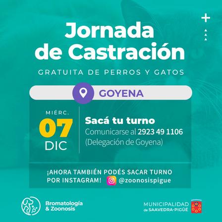 Goyena contará con la asistencia de personal especializado para realizar, gratuitamente, castraciones de perros y de gatos.