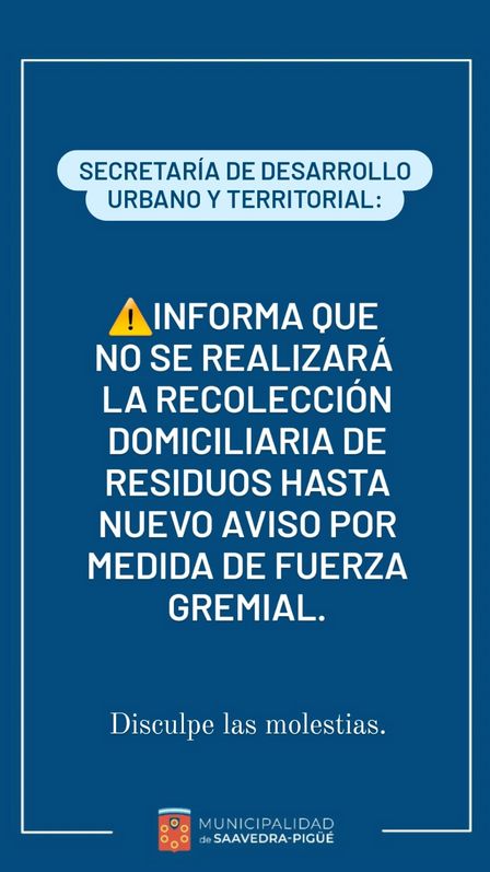 Por el paro de los trabajadores no tendrá lugar hoy el paso de los camiones municipales.
